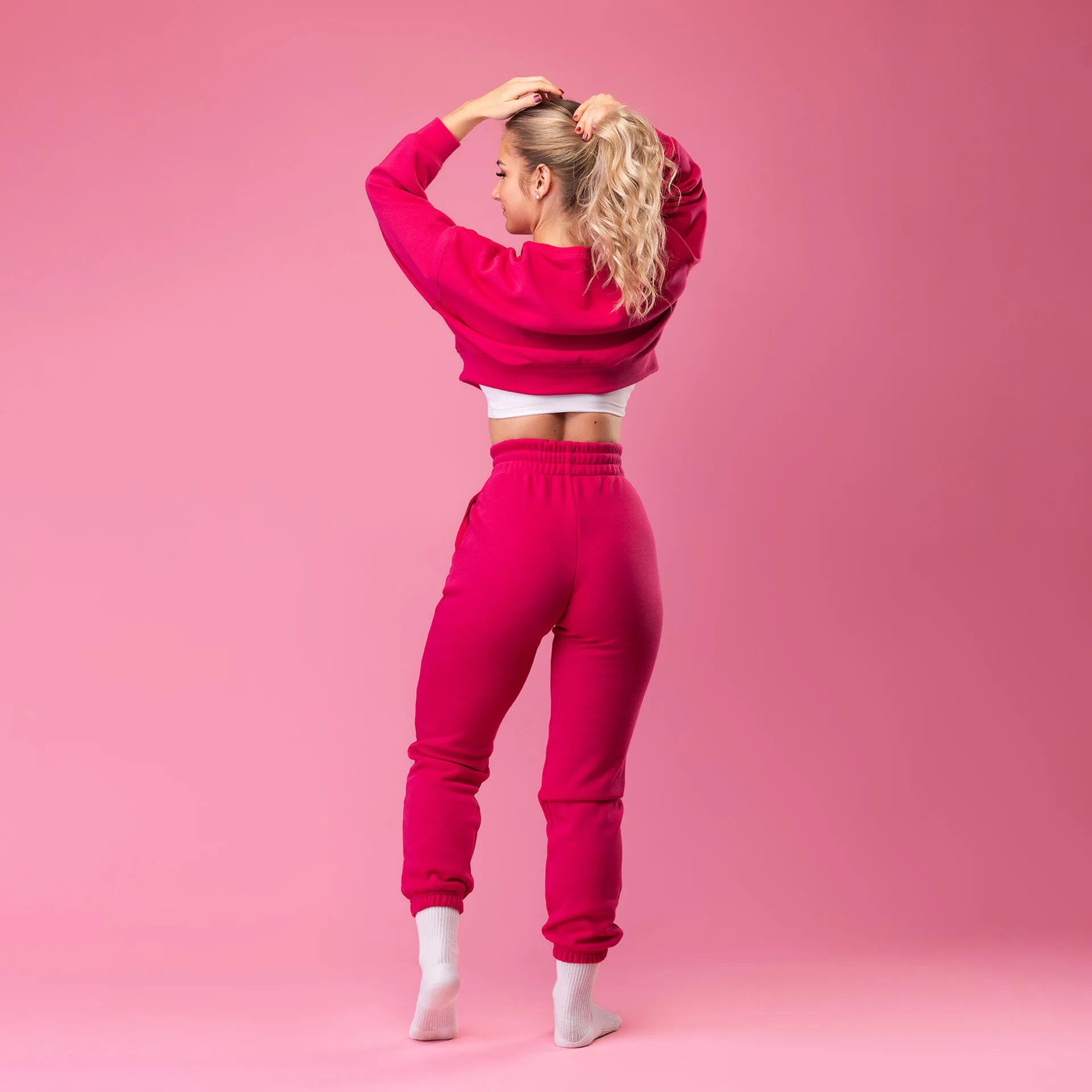 A pink melegítő nadrág ugyanolyan puha, vastag pamutkeverékből készült, mint a pulóver, így együtt egy igazán komfortos, meleg szettet alkotnak. A gumírozott derék és a rugalmas bokapántok biztosítják a kényelmes tartást, miközben a lazább szabás szabad mozgást ad.z élénk pink szín modern, karakteres megjelenést ad, a praktikus oldalzsebek pedig még kényelmesebbé teszik a mindennapi viselésben. A nadrág – akárcsak minden ruhadarabunk – helyben, kézzel készül, odafigyeléssel és precíz kivitelezéssel. Előnyök: