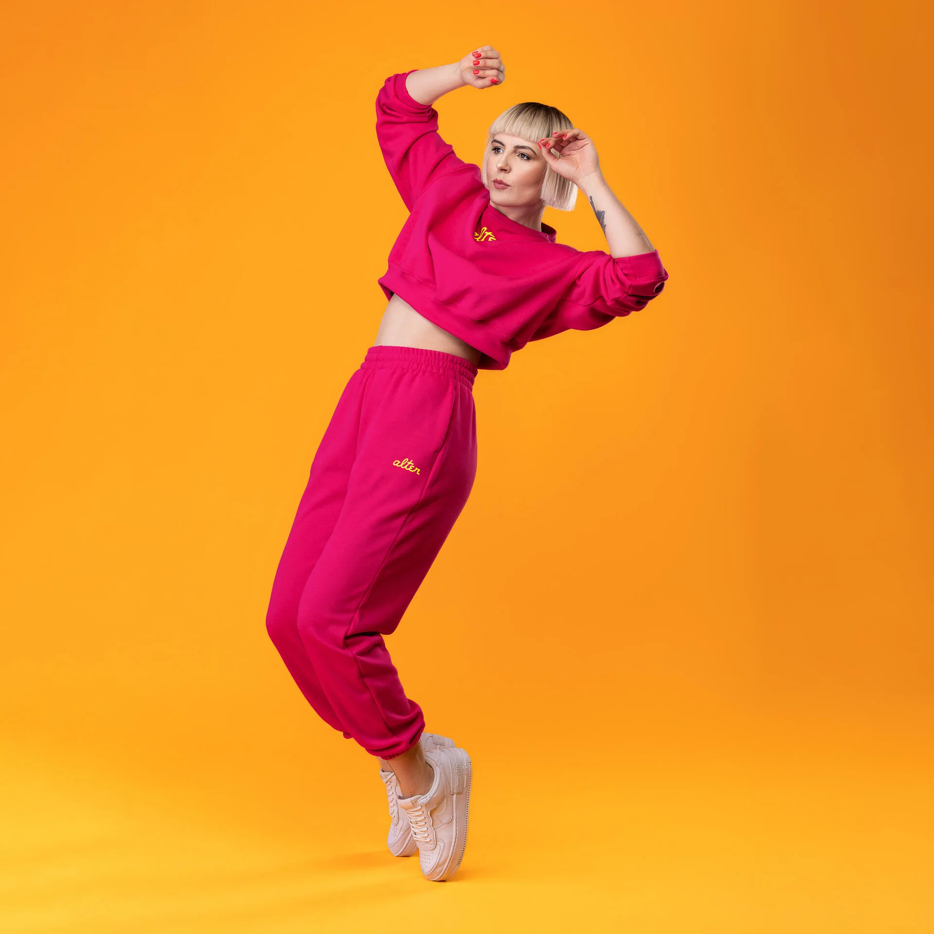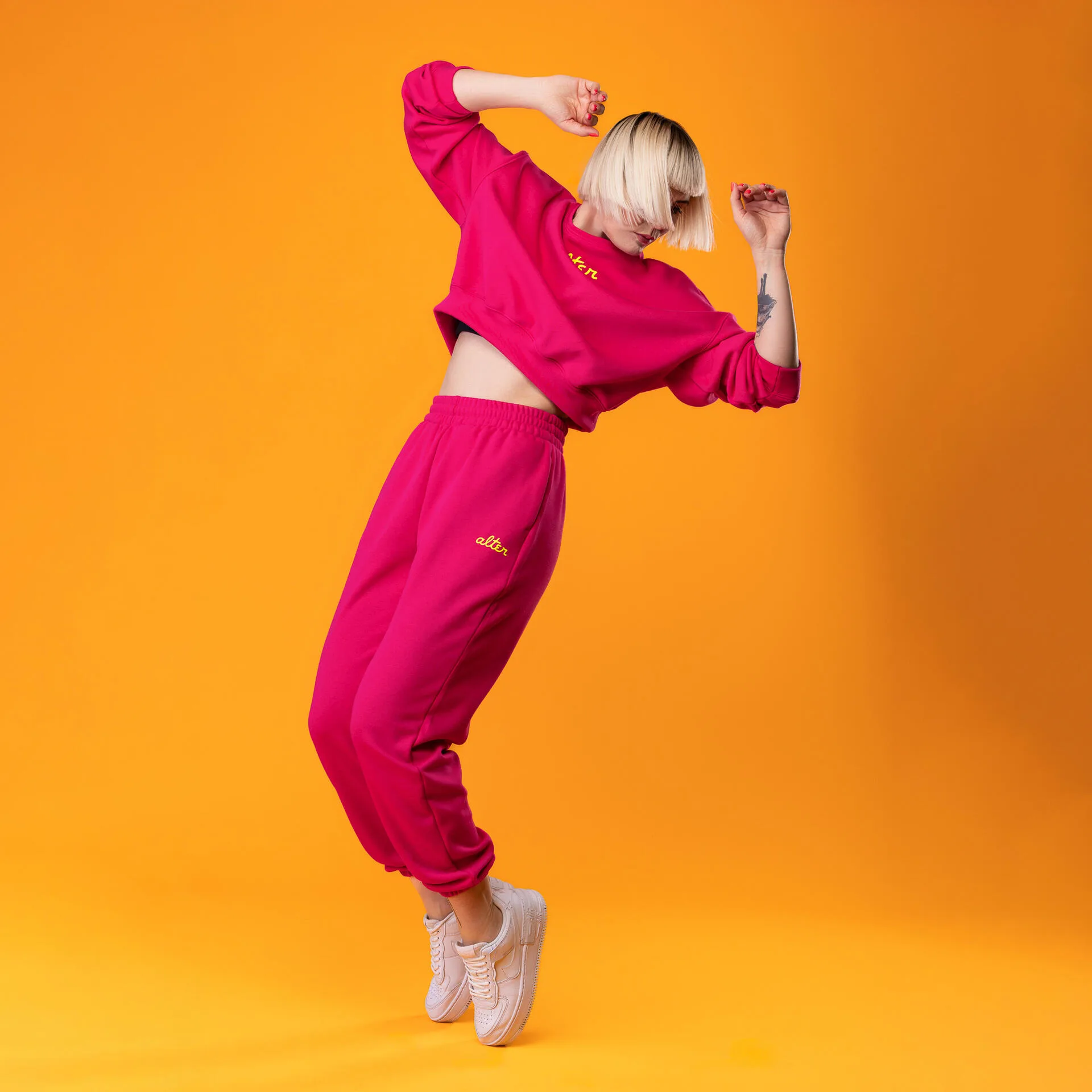 A pulóver vastagabb, meleg anyagból készült, így hűvösebb napokon is kényelmes és puha viselet. A laza, kényelmes szabás és a rugalmas passzék gondoskodnak róla, hogy a pulcsi jól tartson, mégis szabad mozgást adjon. Minden darab kézzel készül a városunkban, gondos, igényes kivitelezéssel. A fazon egyszerre modern és időtlen: crop jellegű felsőrésszel, letisztult vonalakkal és élénk, statement pink színnel. Előnyök: